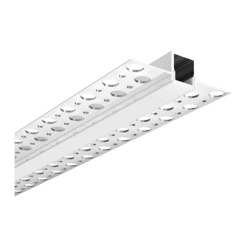 With a total width of 52.5 mm, a recessed channel of 12.5 mm, and a depth of 15 mm, this profile is engineered for precision and durability. The perforated flanges provide strong mechanical grip and effortless plastering, ensuring a smooth, frameless finish that blends perfectly into gypsum or drywall ceilings. Whether used for continuous linear lighting, ambient effects, or architectural highlights, this profile delivers professional results and a sophisticated aesthetic.